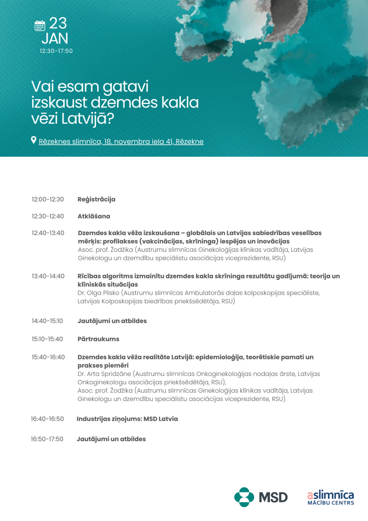 Šī mēneša ietvaros Rīgas Austrumu klīniskās universitātes slimnīcas vadošie valsts ginekoloģijas speciālisti dalīsies savā pieredzē un atziņās, kopā ar Mācību centru rīkojot izglītojošus pasākumus: „Vai esam gatavi izskaust dzemdes kakla vēzi Latvijā?”
